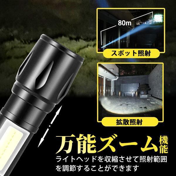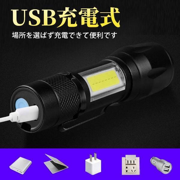ハンドライト LED 懐中電灯 最強 ホルダー 充電 小型 強力 作業用 ライト USB 充電式 コンパクト 防水 COB 防災 軽量 ズーム