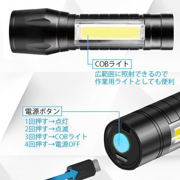 懐中電灯 充電式 LED 強力 I型 USB 充電 小型 ハンディライト 防水 LEDライト 防災 アウトドア 護身 ((S