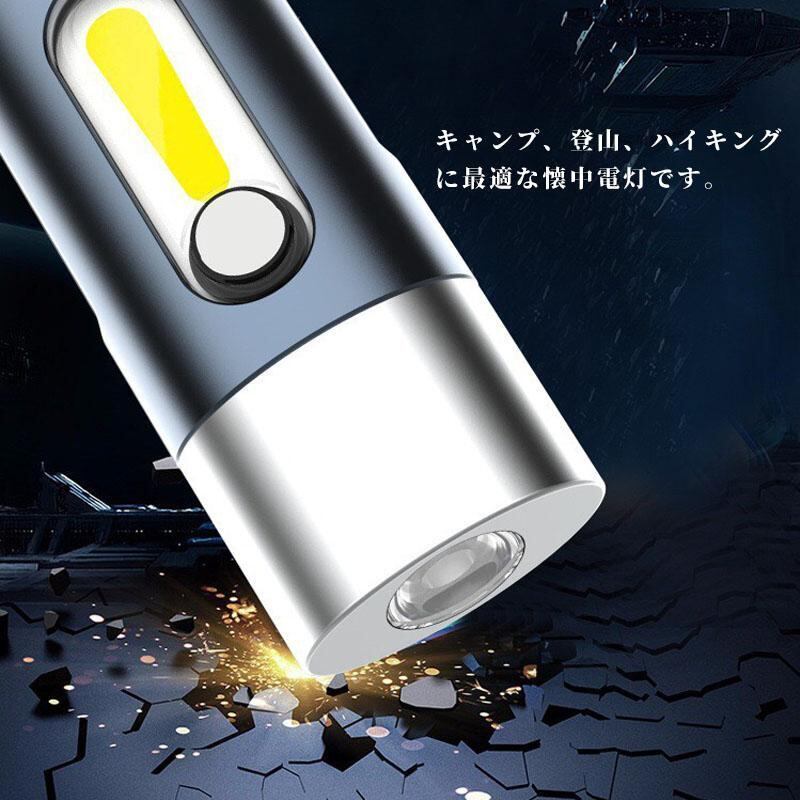 LED 懐中電灯 USB充電式 コンパクト 防水 強力 小型 ライト COB ハンディライト typeーC USB充電