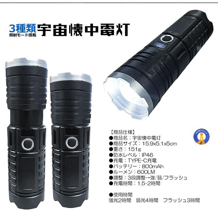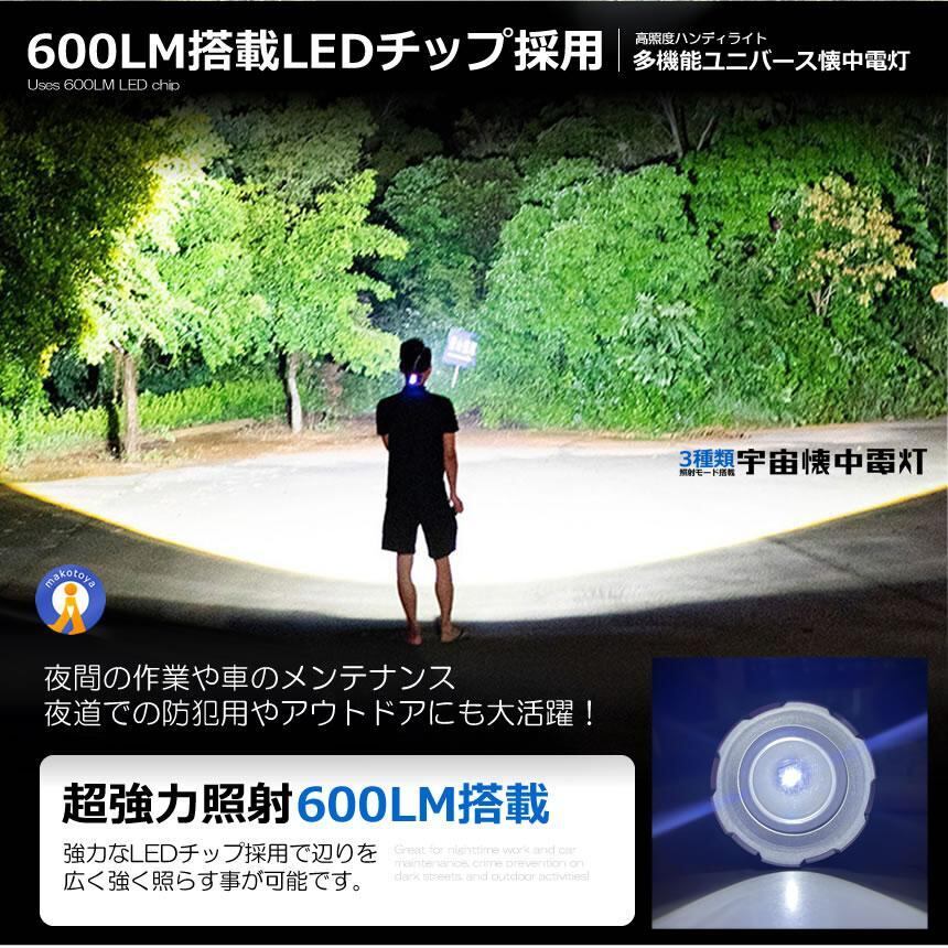 懐中電灯 LED 超高輝度 600ルーメン 明るさ調節 USB充電式 作業灯 ズーム機能 小型 軽量 UNIVERAI