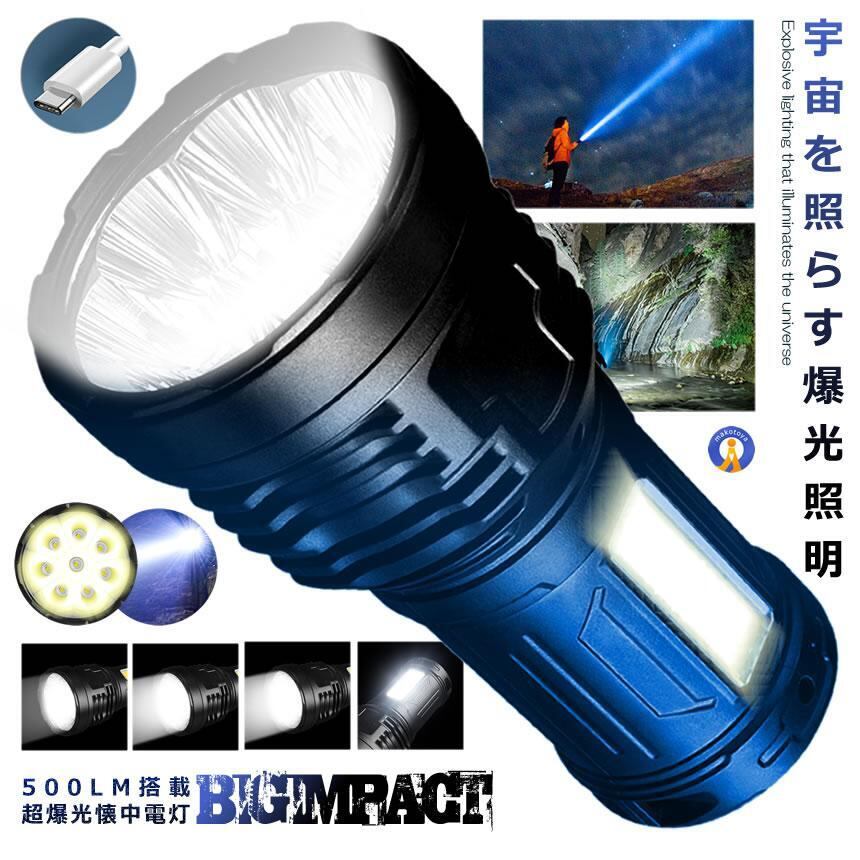 ビッグインパクト懐中電灯 強力照射 軽量 USB充電式 爆光 マルチ 4つの点灯 照明 ランプ 緊急 災害 ライト LED 長距離観測 500m 超高輝度 小型 BIGIMPAC