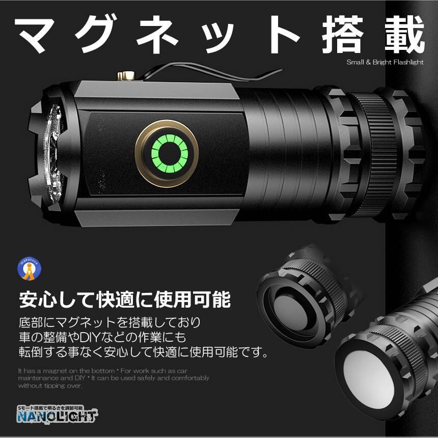 懐中電灯 1000LM LED 強力 小型 18350電池 対応 磁石 5つのモード 照明 高輝度 キャンプ 防災 ハンディライト 夜釣り 登山 防水 ナノライト NONOLIGHT