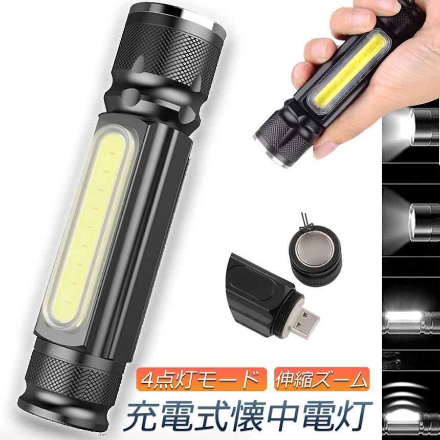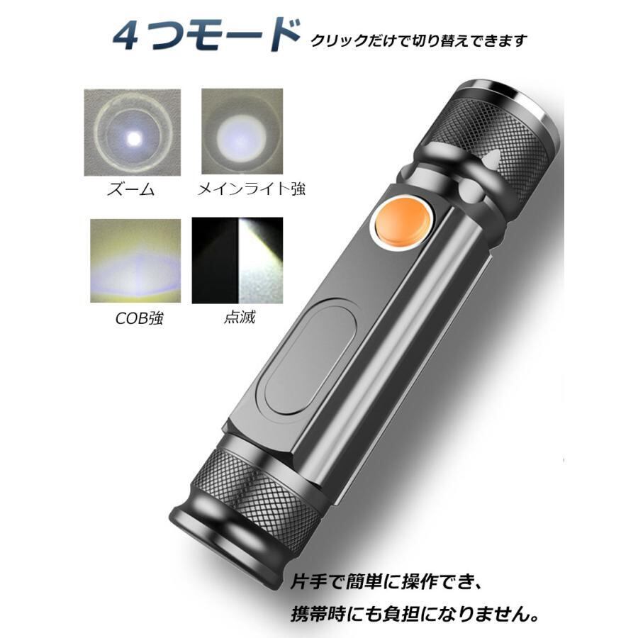 懐中電灯 LEDライト 充電式 ズーム付き 充電式 COBライト ハンドライト USB充電 ズーム 超強光 作業灯 ワークライト クリップ マグネット