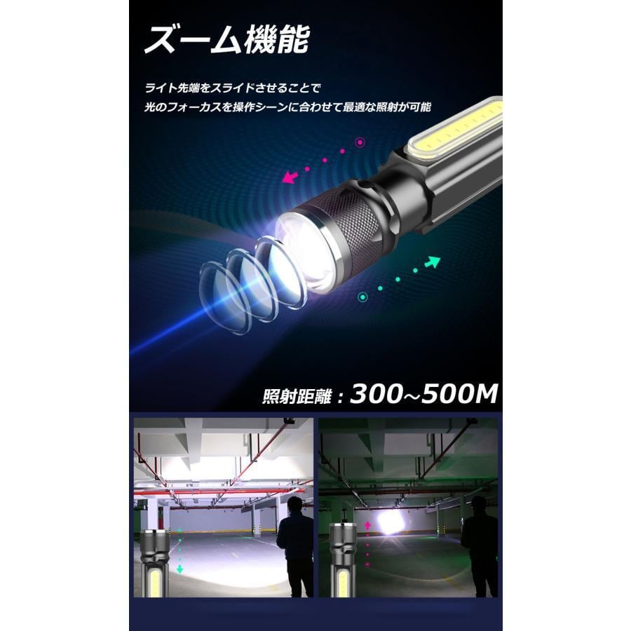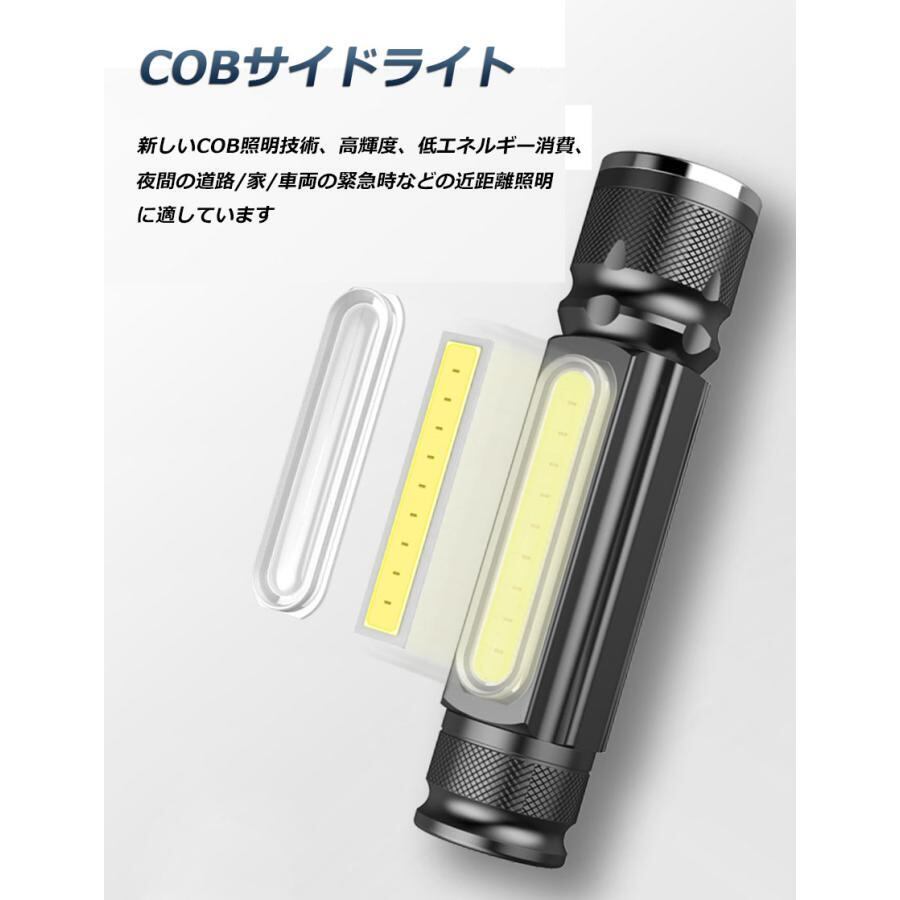 懐中電灯 LEDライト 充電式 ズーム付き 充電式 COBライト ハンドライト USB充電 ズーム 超強光 作業灯 ワークライト クリップ マグネット