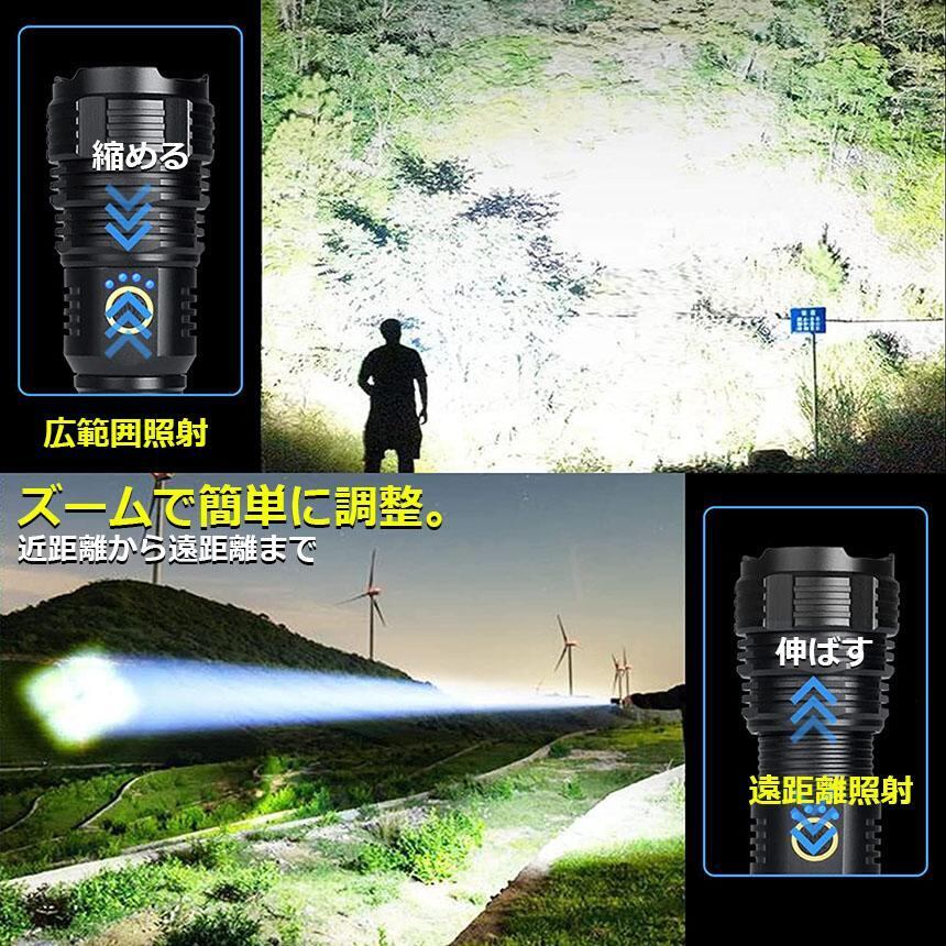 懐中電灯 ledライト XHP70 ハンディライト 強力 防水 USB充電式 電池式 LCD残量表示 ズーム機能 3モード調光 Type-C充電式 l