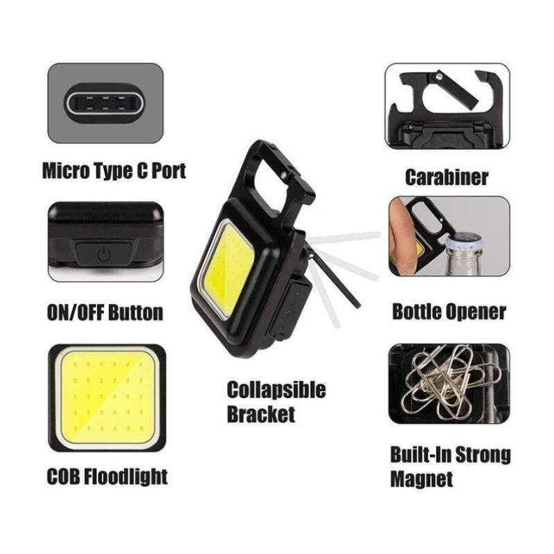 懐中電灯 ランタン LEDライト LED投光器 屋外 防水 充電式 COB USB 作業 小型 ミニ アウトドア 可動スタンド キャンプ 照明 軽量 ワーク 防災 キーホルダー