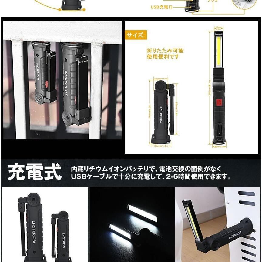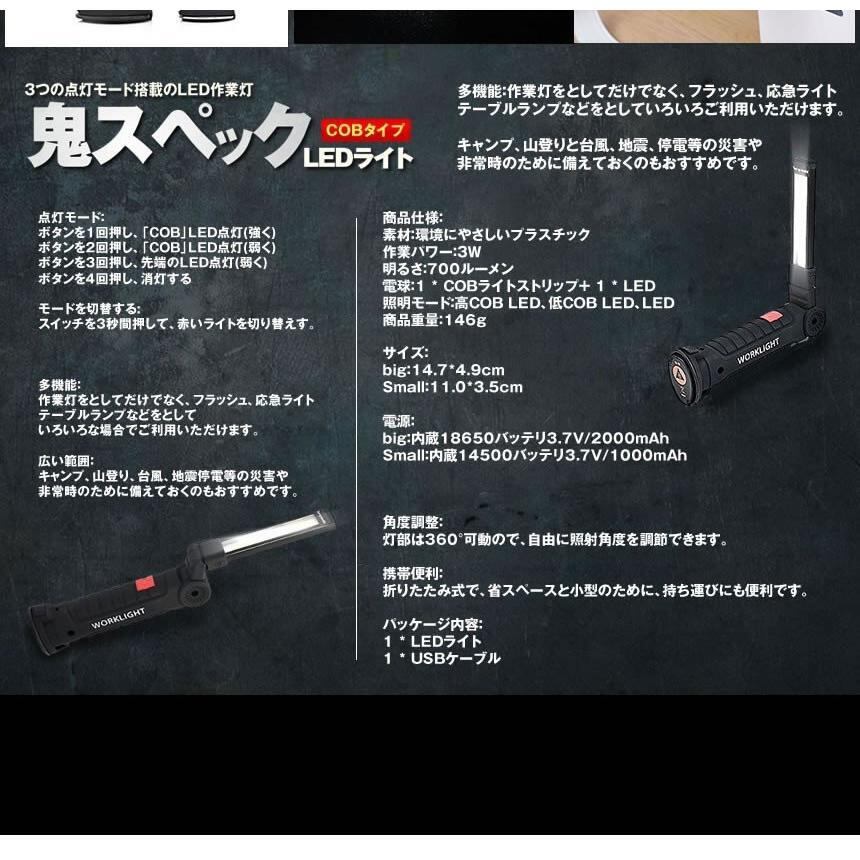 ハイスペック LEDライト Sサイズ COB LED作業灯 折畳み式 USB充電式 ワークライト 防水 懐中電灯 360度回転 災害 震災 避難所 夜間 明るい ONISPL-S