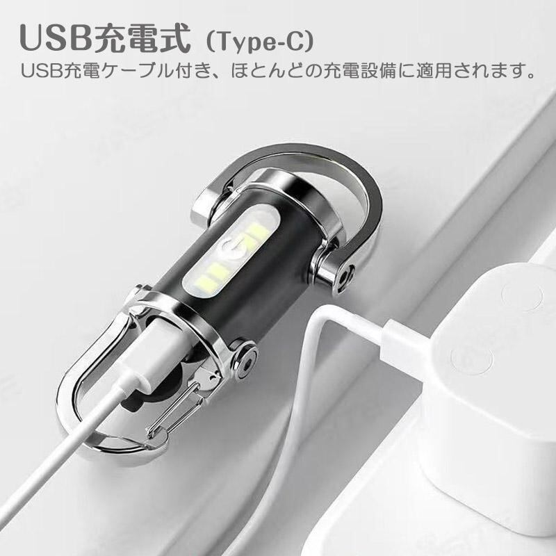 キーホルダー型ライト 超高輝度 LED COB キーチェーンライト ポータブルキーホルダー typeーC USB充電 懐中電灯 USB充電式 コンパクト 防水 強力