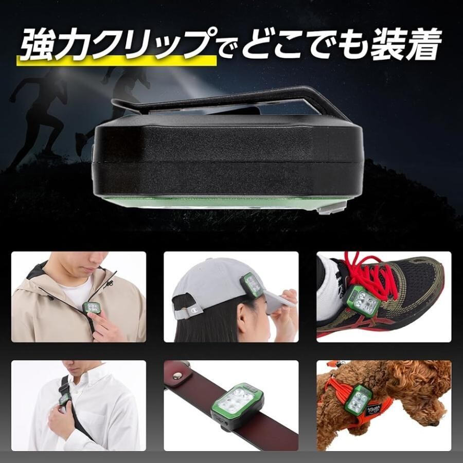 ランニング ライト ネックライト ウォーキング 散歩 充電式 クリップライト(グリーン)