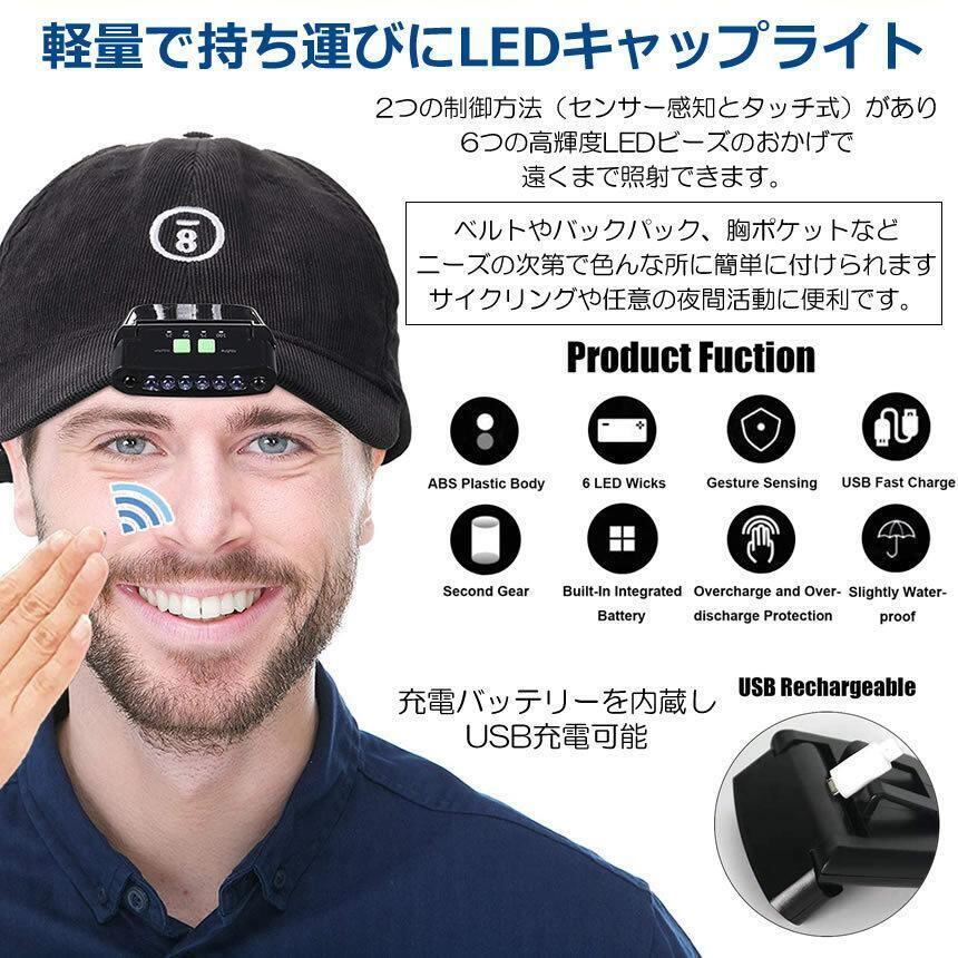 LEDキャップライト ヘッドライト 角度調整可能 懐中電灯 USB充電 電池残量表示 クリップ付き 帽子ライト キャップ アウトドア ウォーキング KURIP