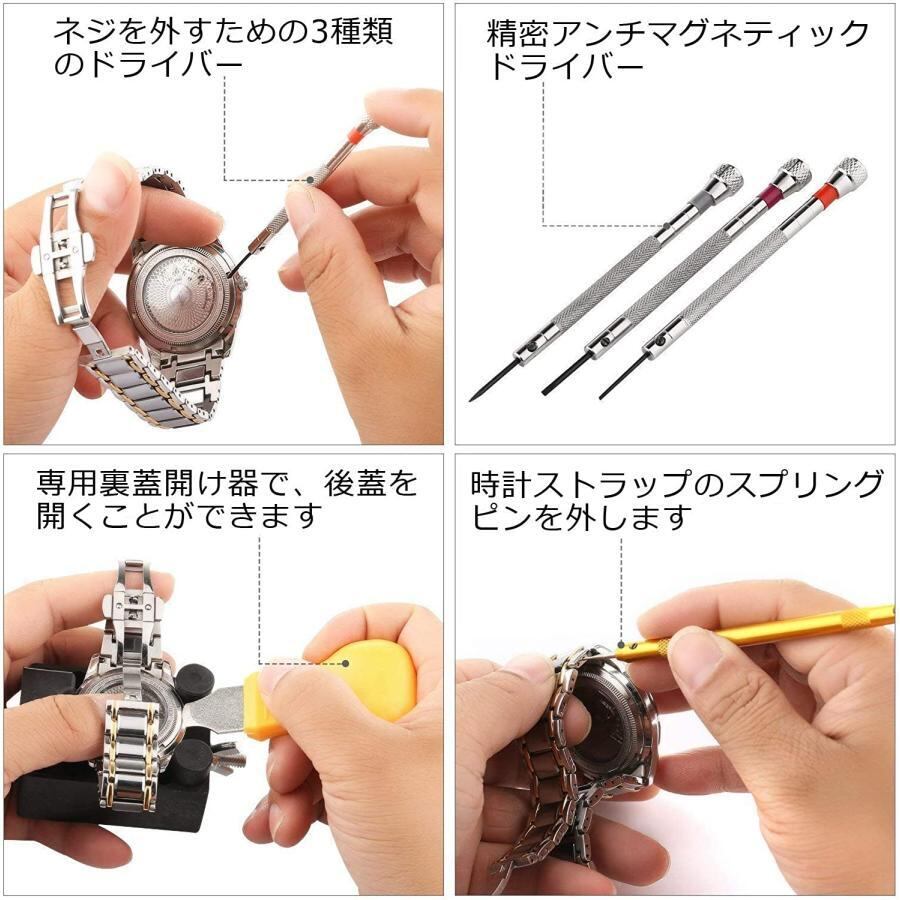 電池交換、腕時計のベルト交換、ガスケットの調整、腕時計バンドの調整、ベルト長さ調整や内部の修理時に、147セット入り、必要な工具は一式揃っており、時計屋さんに修理を頼まなくても自分で直せます。