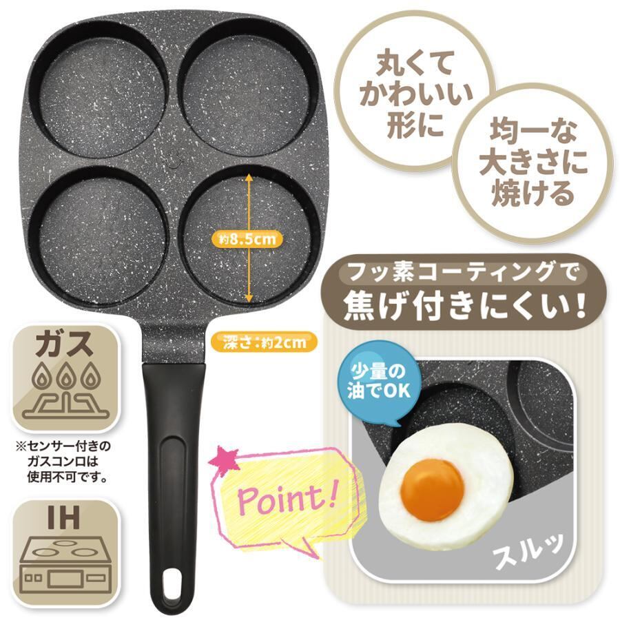 仕切り フライパン 四つ穴 目玉焼き IH対応 4つ穴 お弁当 時短 朝食 マルチパン フッ素コート 大判焼き 敬老の日 プレゼント 60N◇ 4穴フライパン
