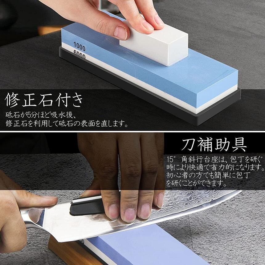 研ぎ石 包丁 両面砥石 #1000 #6000 砥石 刃物砥石 包丁研ぎ砥石 包丁研ぎ器 中砥石 仕上砥石 包丁研ぎ 包丁砥石 刀補助具 竹台座 ゴム