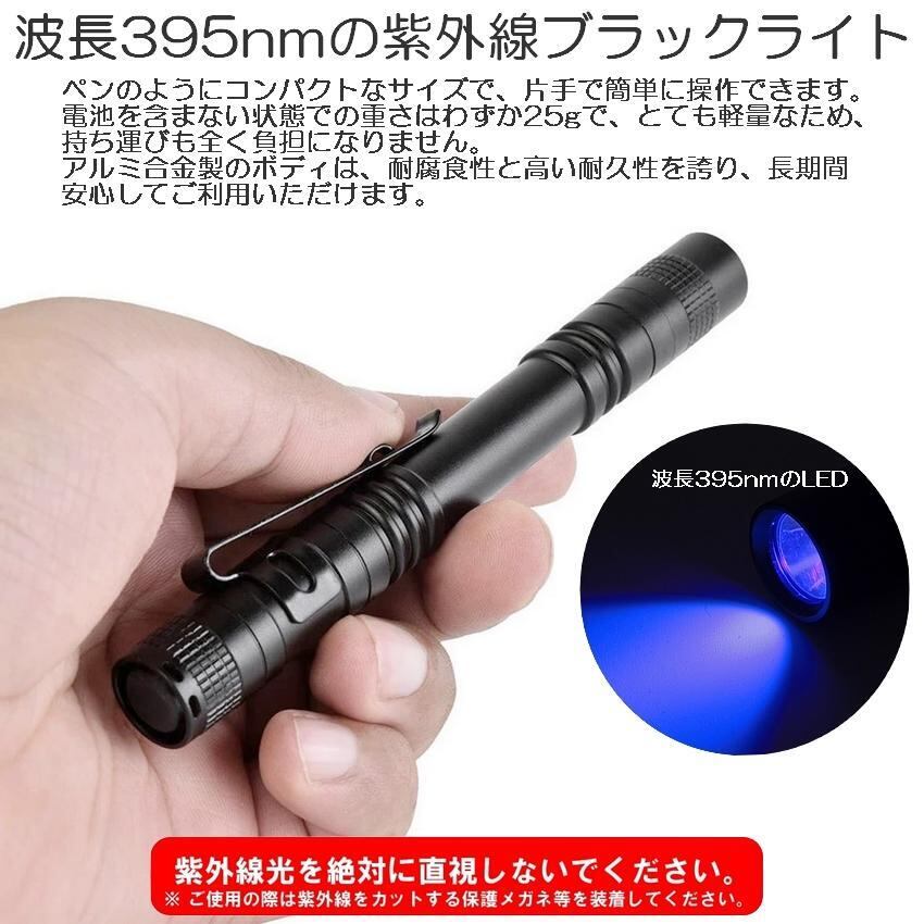 ブラックライト LED UVライト 395nm 紫外線ライト 懐中電灯 ブルーライト ハンディ アルミ合金材質 単4形電池 コンパクト レジン用硬化ライト