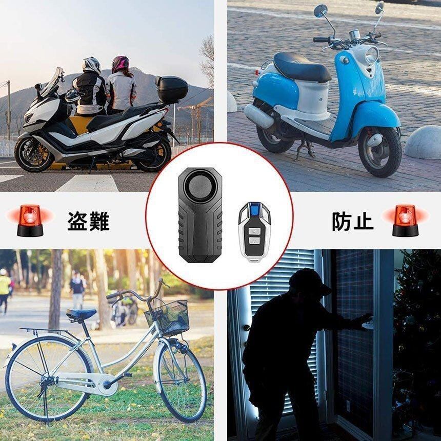 防犯アラーム バイク 自転車 防犯ブザー バイク盗難防止 グッズ 防犯ブザー 3段階音量調整 7段階振動感度 車セキュリティアラーム リモート
