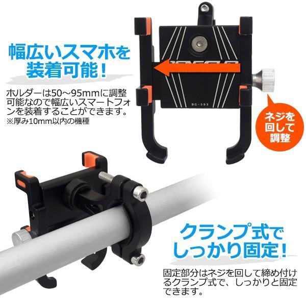 ホルダーは50〜95mmに調整可能なので幅広いスマートフォンを装着することができます。