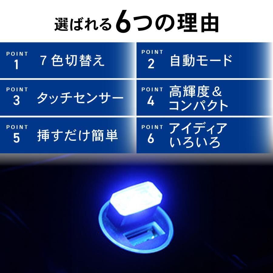 USB Type-A イルミライト 7色 切替え LED イルミネーション ライト 車 照明 ミニライト 補助ライト 車載 車内 照明 災害 タッチセンサー