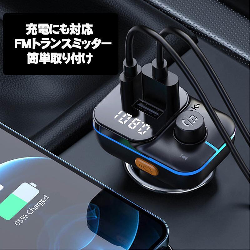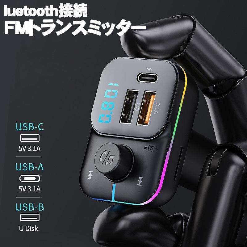 FMトランスミッター [C24] Bluetooth TYPE-C ポート 急速充電 LED付 シガーソケット 12〜24V車対応 携帯 音楽 無線 スマホ iPhone各機種 対応