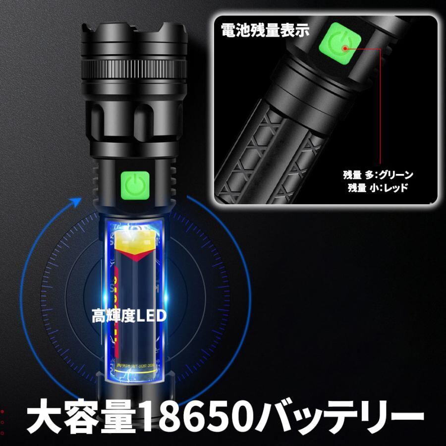 LEDハンディライト 懐中電灯 超高輝度 3000ルーメン 3モード 充電式 生活防水 防災対策 18650充電池付属