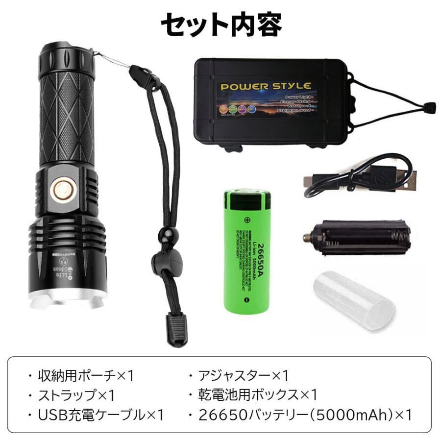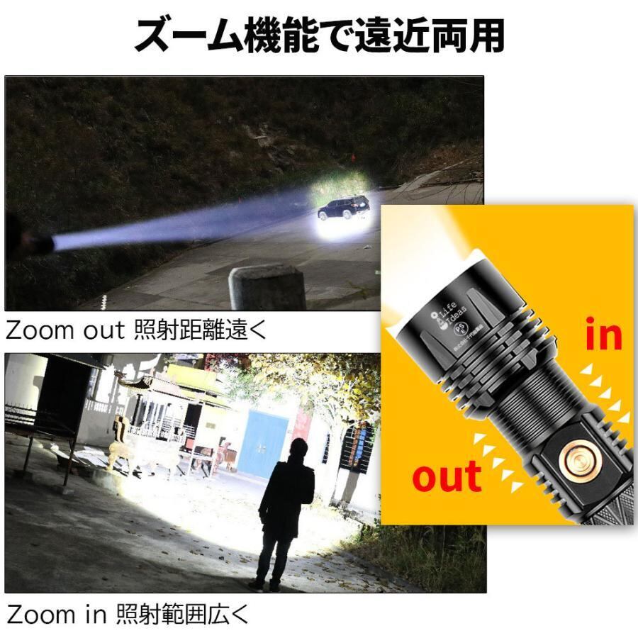 LEDハンディライト 懐中電灯 ズーム機能 防水 CREE社 XHP90チップ 26650リチウム充電池付属 単四乾電池対応 1年保証
