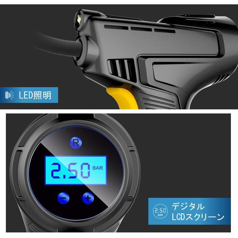 電動空気入れ シガーソケット給電タイプ コンプレッサー 空気入れ 電動 プール エアーコンプレッサー 圧力計付 液晶 ポンプ タイヤ 小型 軽量 ボール LEDライト