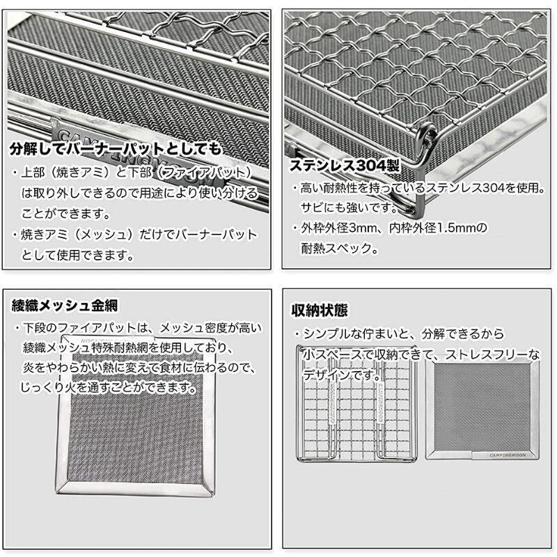 ミニロースター M メッシュ バーナーパッド 綾織 ハイメッシュ ゴトク 網 五徳 ファイアパット キャンプ ソロ クッカー アウトドア 小型 キャンピングムーン