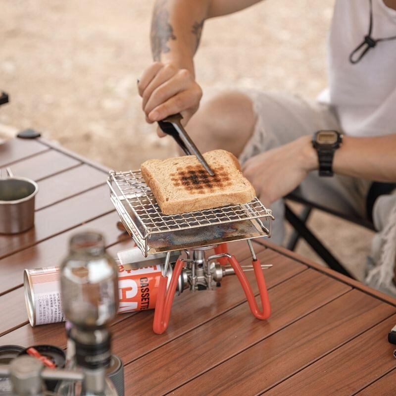 ・焼おにぎりや食パン焼ける大きさで、ちょっとした食材を焼きたい時などに重宝するサイズ感・SOTO ST-310に食パンを置いて焼く場合、食パン片側を焼くのに弱火で1分程度