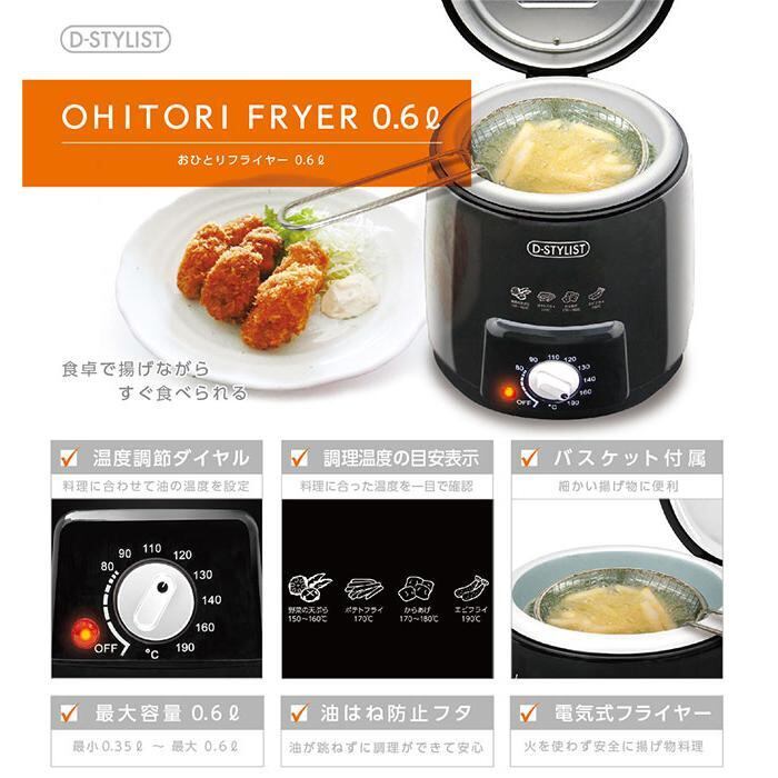 フライヤー 家庭用 電気 卓上 おひとりフライヤー 0.6L コンパクト