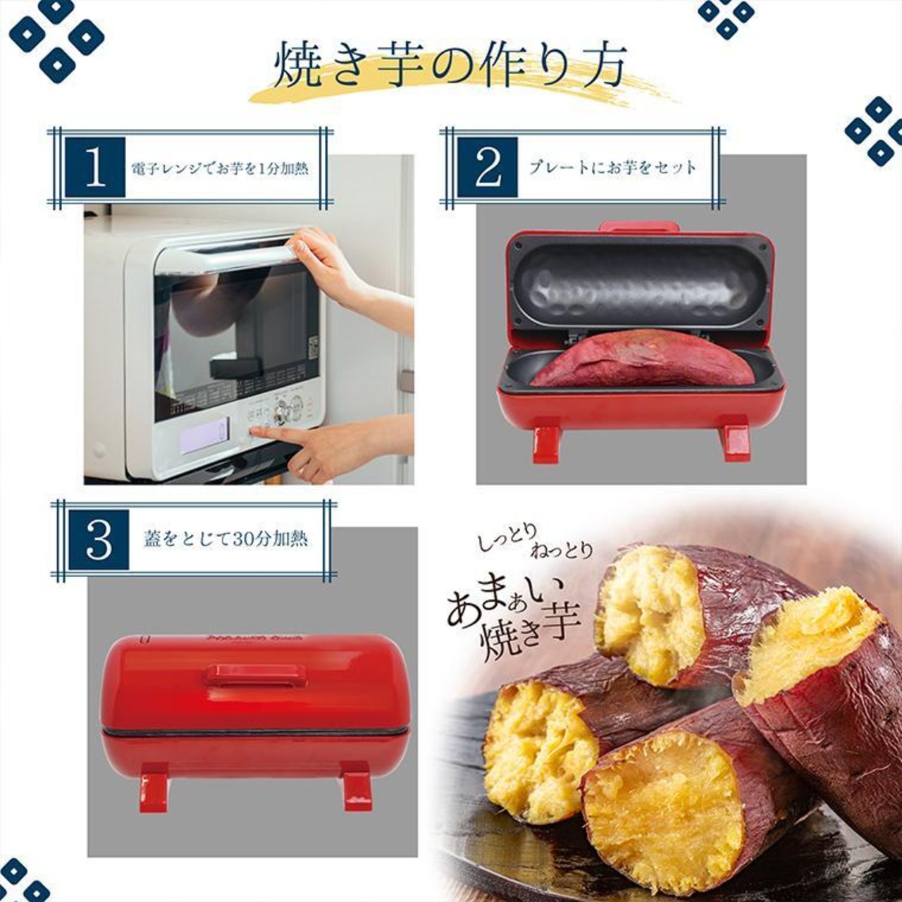 火を使わないので、誰でも簡単においしい焼き芋が作れます!