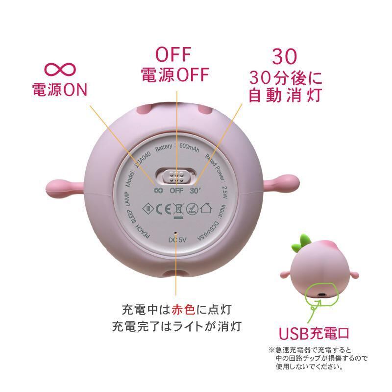 ナイトライト テーブルライト ライト 照明 寝室 もも モモ ピーチ 可愛い 調光 子供 授乳 シリコン USB充電式 タイマー機能 スマホスタンド