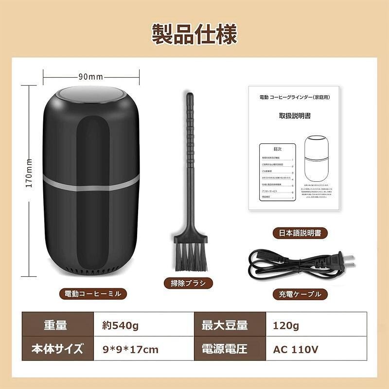 電動コーヒーミル コーヒーグラインダー 粉末 コーヒー豆 ひき機 数秒細挽き 80g大容量 ワンタッチ操作 豆挽き/緑茶/胡椒/調味料/穀物を挽く 粒度調整 一台多役
