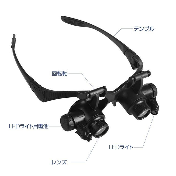 LEDライト付き メガネ型ルーペ ヘッドルーペ 左右独立角度調整 レンズ8種類付属 2.5倍/4倍/6倍/8倍10倍/15倍/20倍/25倍 宝石鑑定 時計修理 HOP-LPXK8G9892