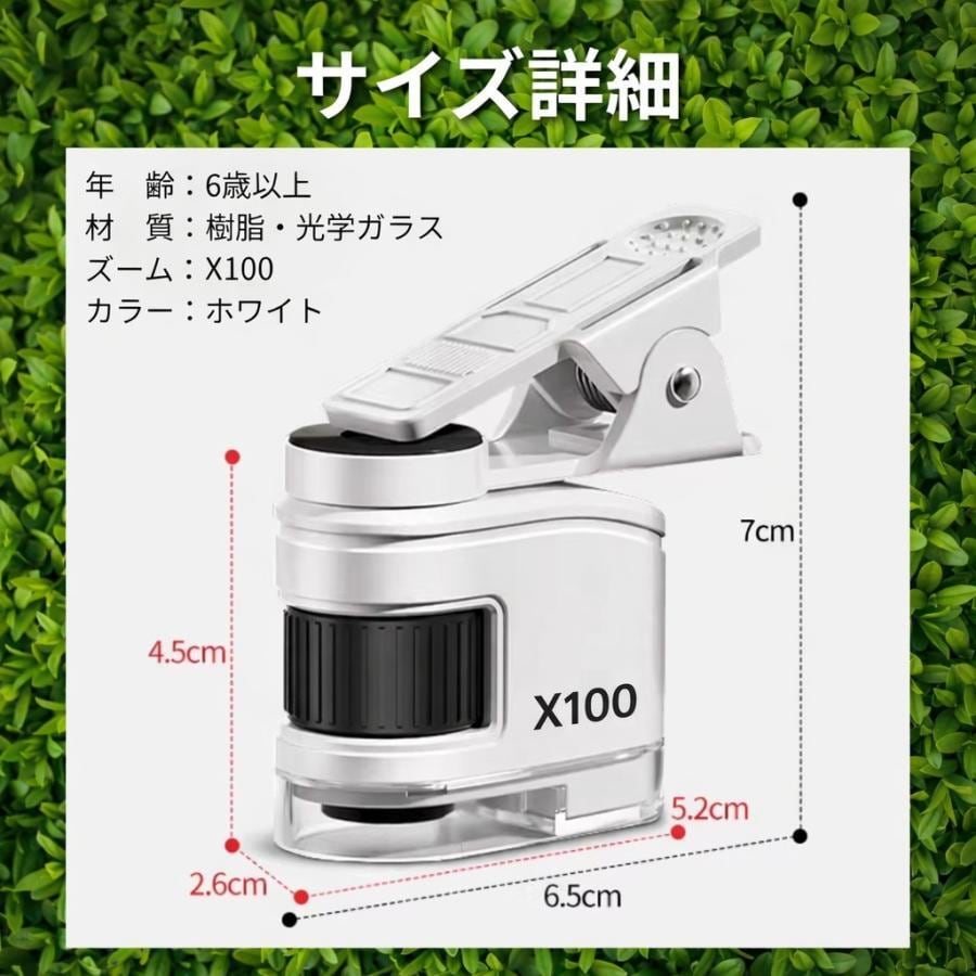 ミニ顕微鏡 100倍拡大レンズ ルーペ マクロ観察レンズLED・UV搭載自由研究小型 スマホ装着用クリップあり