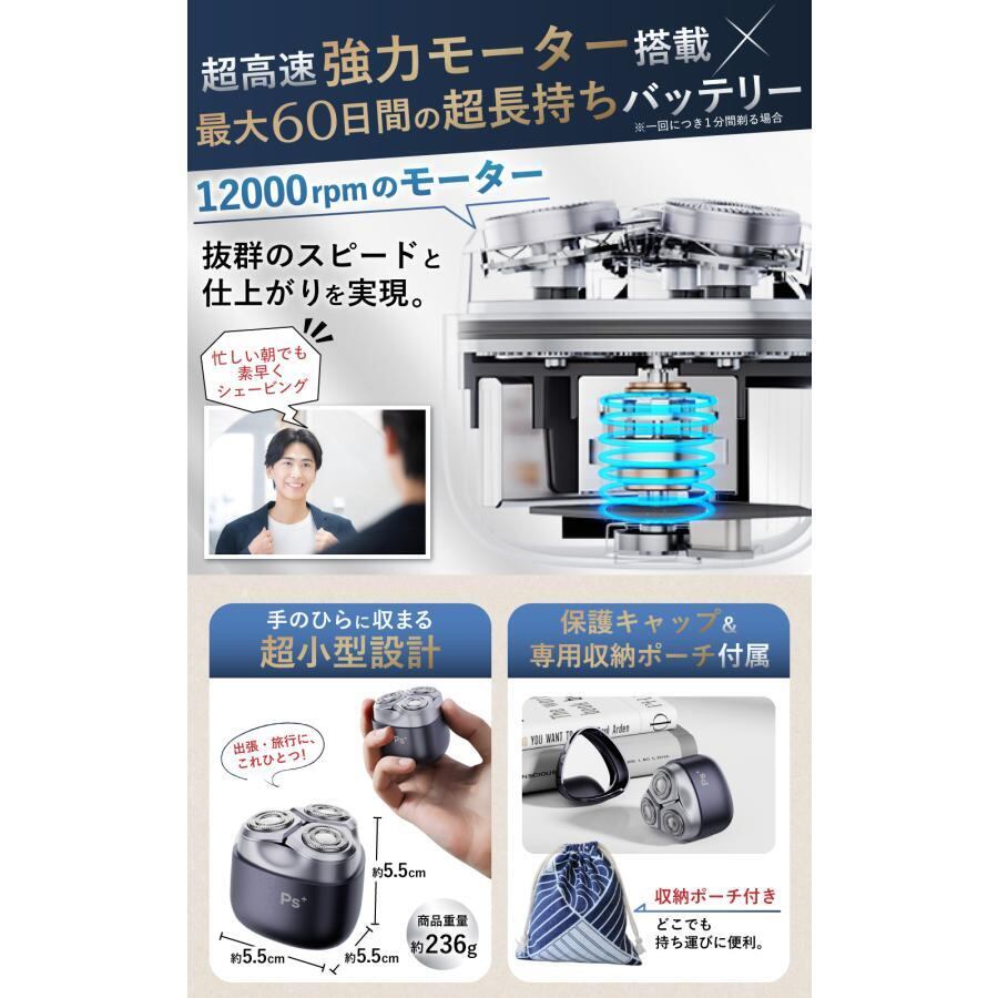 【強力高速モーター・長持ちバッテリー|忙しい朝も素早くキレイ】12000RPMの強力モーター搭載で、短時間でもしっかり深剃り。最大60日使用可能なロングバッテリー(1日1分想定)。静音45dB設計で、職場・外出先でも使いやすいです。